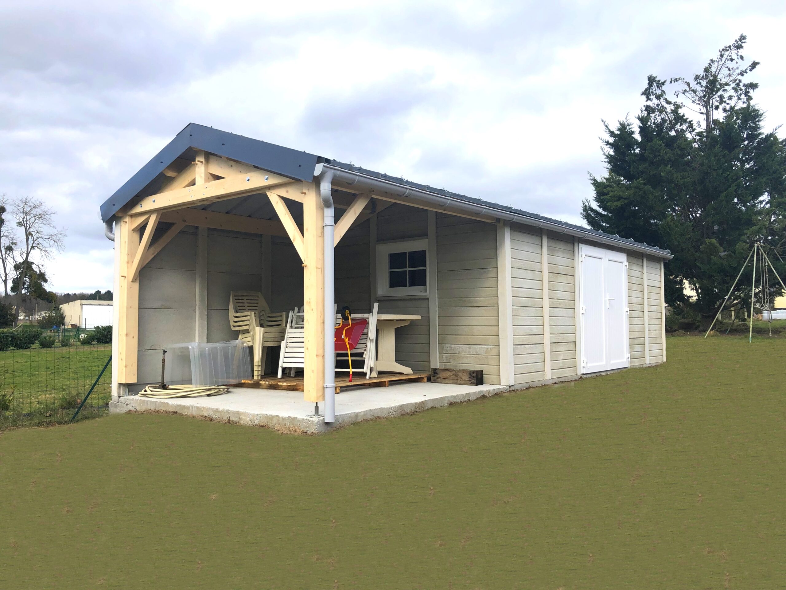 Abri béton aspect bois avec auvent 2 pentes