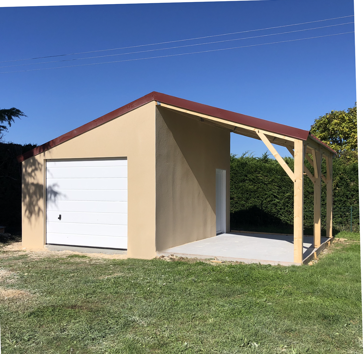 Garage en béton avec auvent accolé