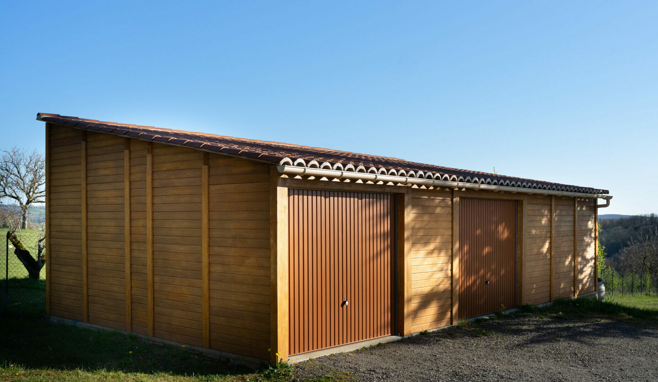 Garage double béton aspect bois, 1 pente
